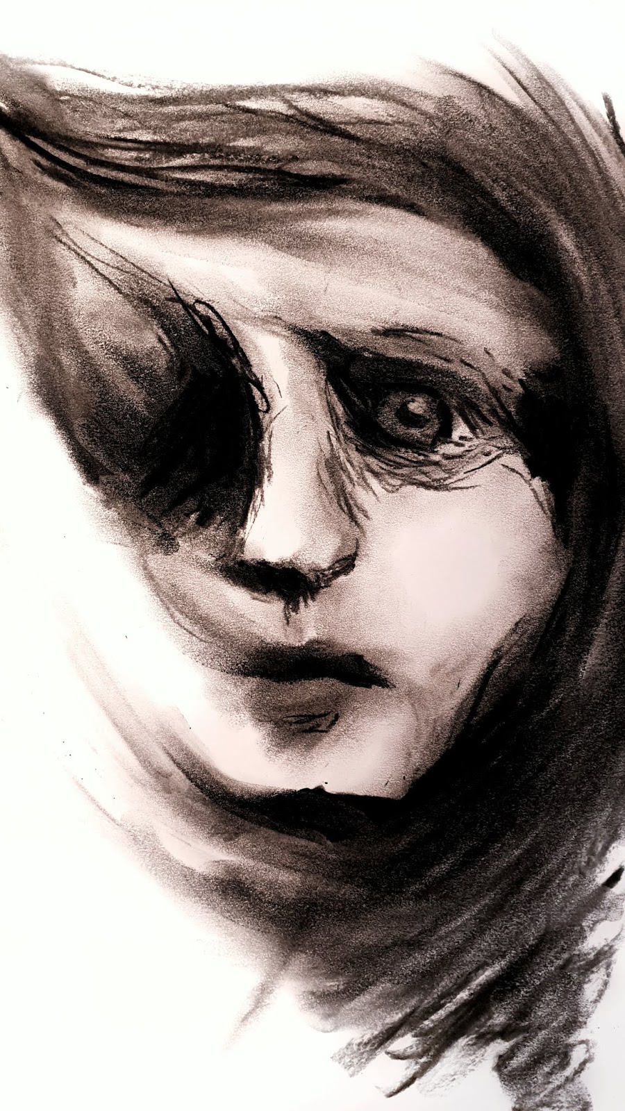 Oon nyt osastolla. 2 viikkoa takana ja 4 edessä. Meillä oli jonkunlainen "kuvistunti" jossa me piirrettiin hiilillä A3 kokoiselle paperille sen hetken fiiliksiä ja sitten keskusteltiin niistä. Multa synty tämmönen ilmeikäs... juttu? 😃 Nimesin tän tuulenpesäksi jonka läpi kylmä tuuli puhaltaa ja vie osan mukanaan. Olisin halunnu jatkaa tätä huomattavasti pitempään, mutta tässä oli kyse siitä, että vaan tehdään sen aikaa kun tehdään...